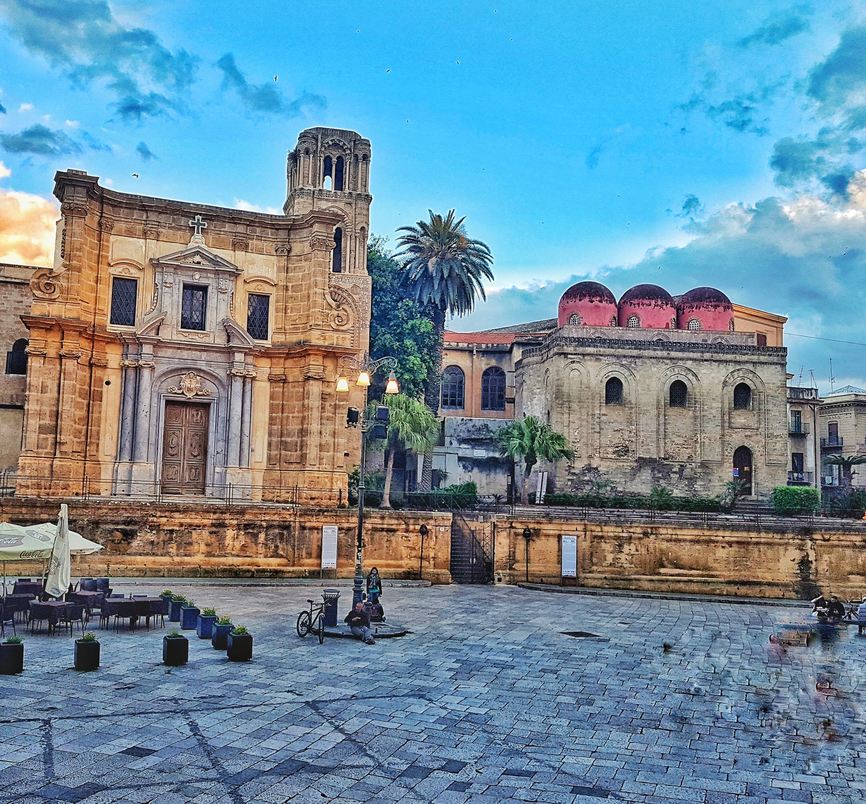 Nell'adiacente Piazza Bellini spiccano la chiesa di San Cataldo, tipico esempio di architettura Arabo Normanna, con la forma squadrata e la cupola rossa in alto, e la chiesa di Santa Maria dell'Ammiraglio, nota come "La Martorana". Molto piccola e ricca di mosaici bizantini, prende il nome dalla storia secondo cui qui nacque la famosa frutta martorana, opera delle monache benedettine del convento vicino fondato dalla nobildonna Eloisa Martorana.